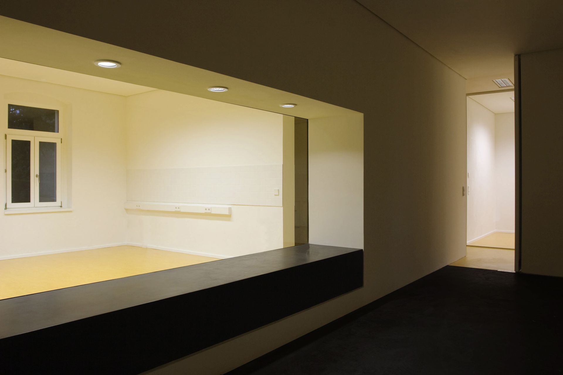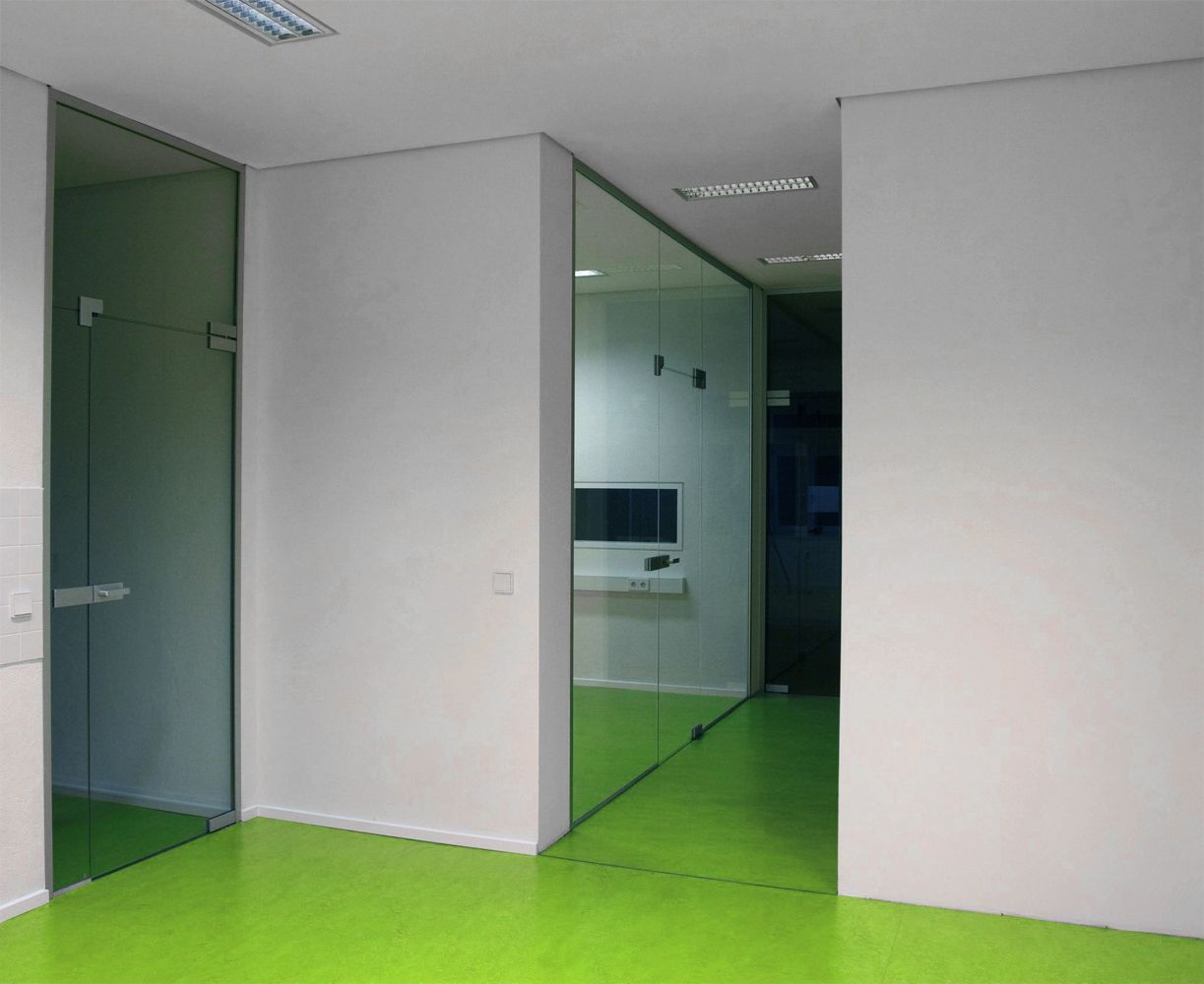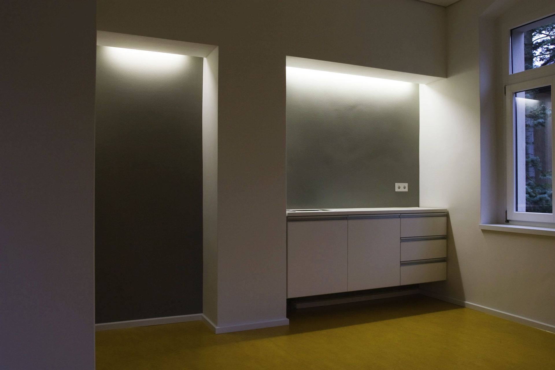 Teile eines Wohnhauses in Radebeul wurden im Auftrag der DTS GmbH zu einem Dentallabor umgebaut. Die im Bestand stark gegliederte Wohnraumstruktur war im Rahmen der engen statischen Gegebenheiten zu einem flexibel organisierbaren Arbeitsbereich zusammenzufassen. Der mit Bauherr und Fachplaner abgestimmte und auf die Gebäudesituation optimierte Prozessablauf innerhalb des Labors war maßgebliche Grundlage für die Grundrissgestaltung. Die vorhandene Struktur wurde weitgehend geöffnet, um die Zirkulation der Arbeitsschritte untereinander möglich werden zu lassen. Neben einem offenen, frei organisierbaren Grundriss wurde Wert auf helle, freundliche Farben, optimale Belichtung und großzügige Arbeitsplatzsituationen gelegt. Die straffe Organisation der Arbeitsbereiche wird durch den fließenden Raum und moderne Oberflächen aufgelockert. Die karge steinerne Empfangshalle steht mit ihrem schwarzen Betonboden im Kontrast zu den Arbeitsbereichen mit farbintensivem Bodenbelag. Hochwertige, individuell geplante und gefertigte Ausbauelemente runden das Bild einer modernen Arbeitswelt ab.