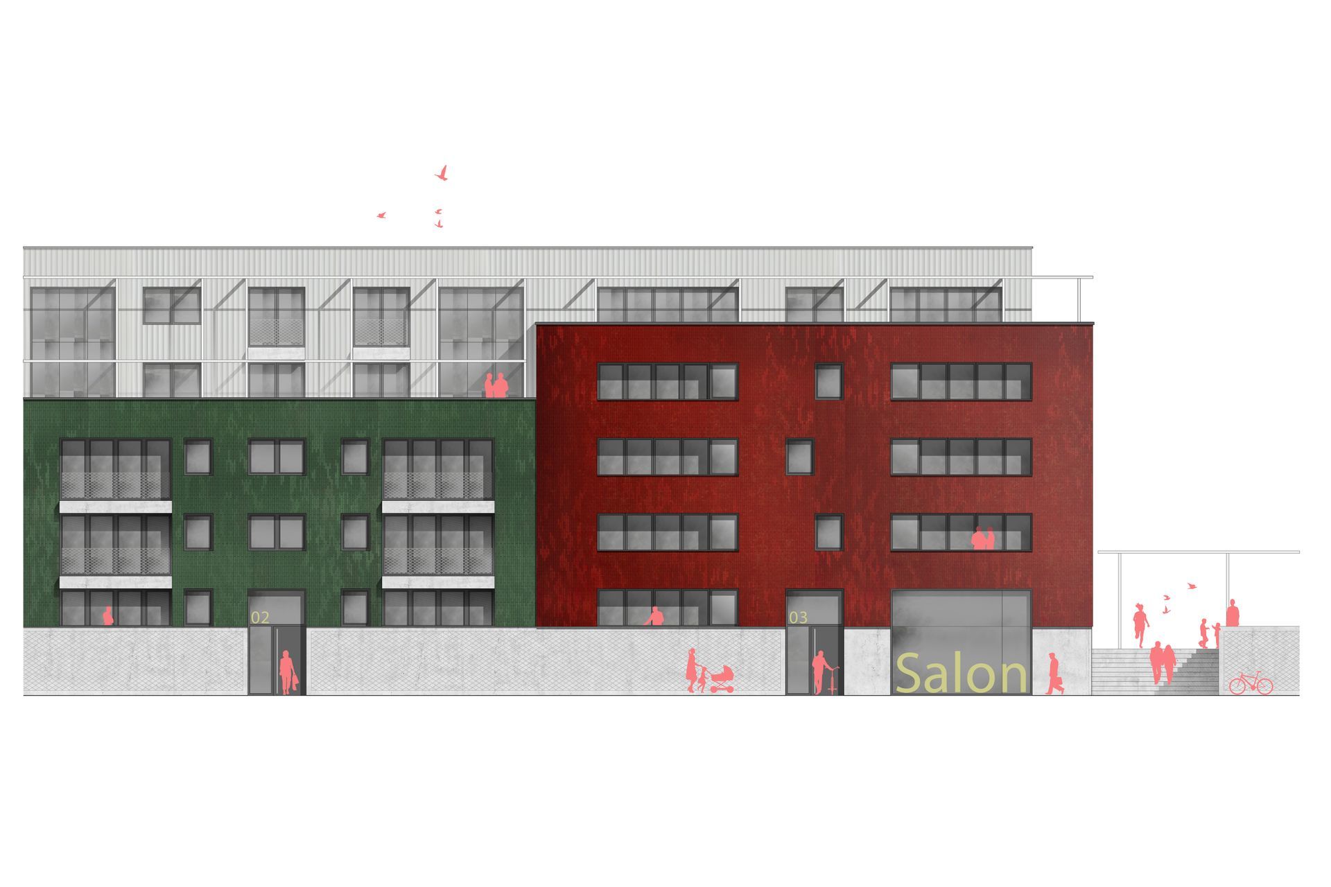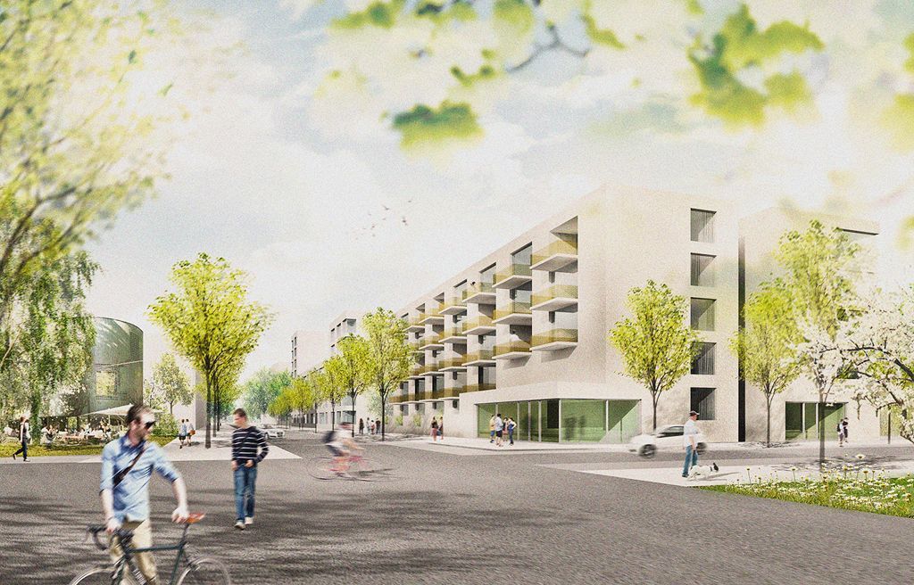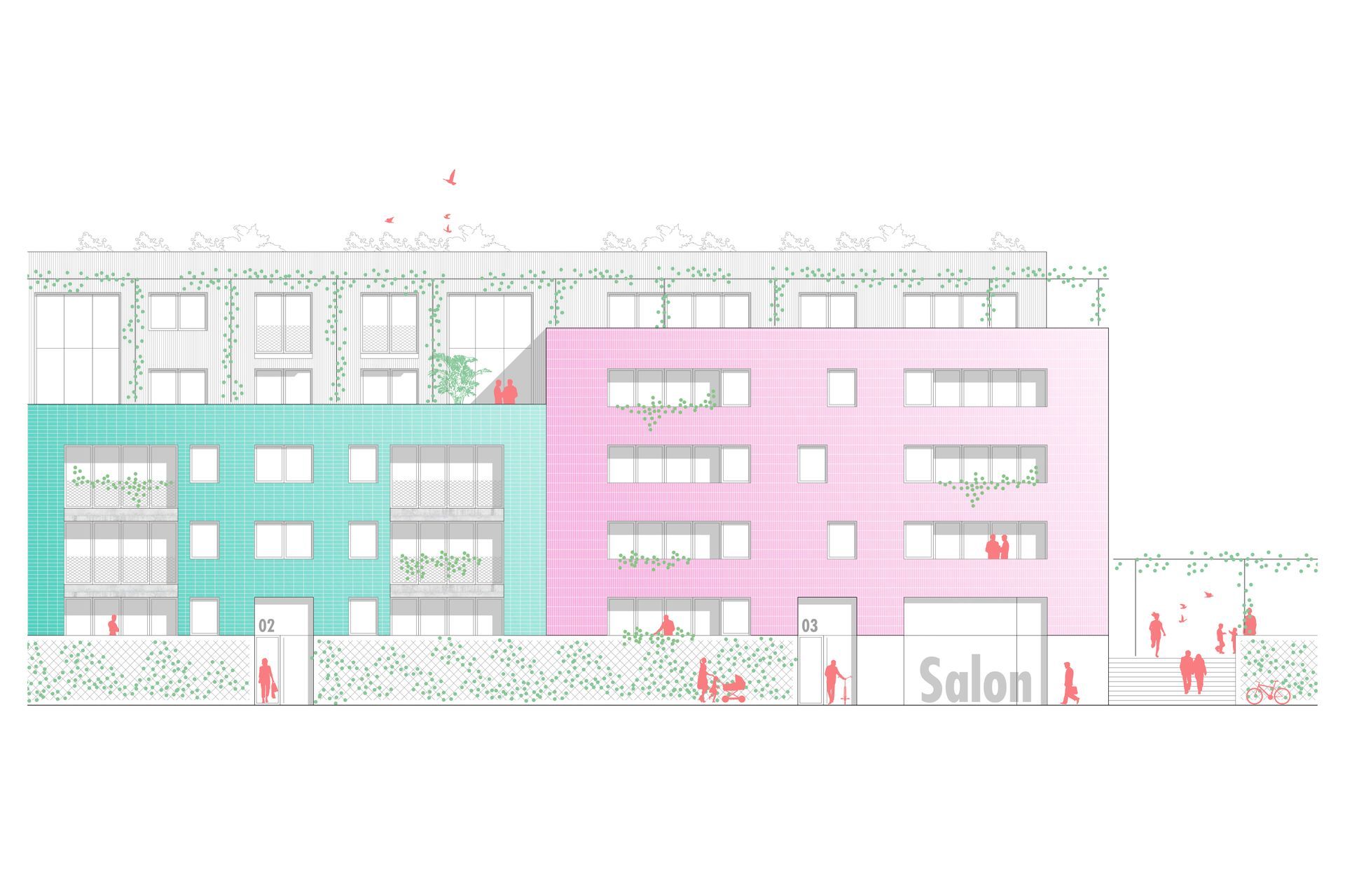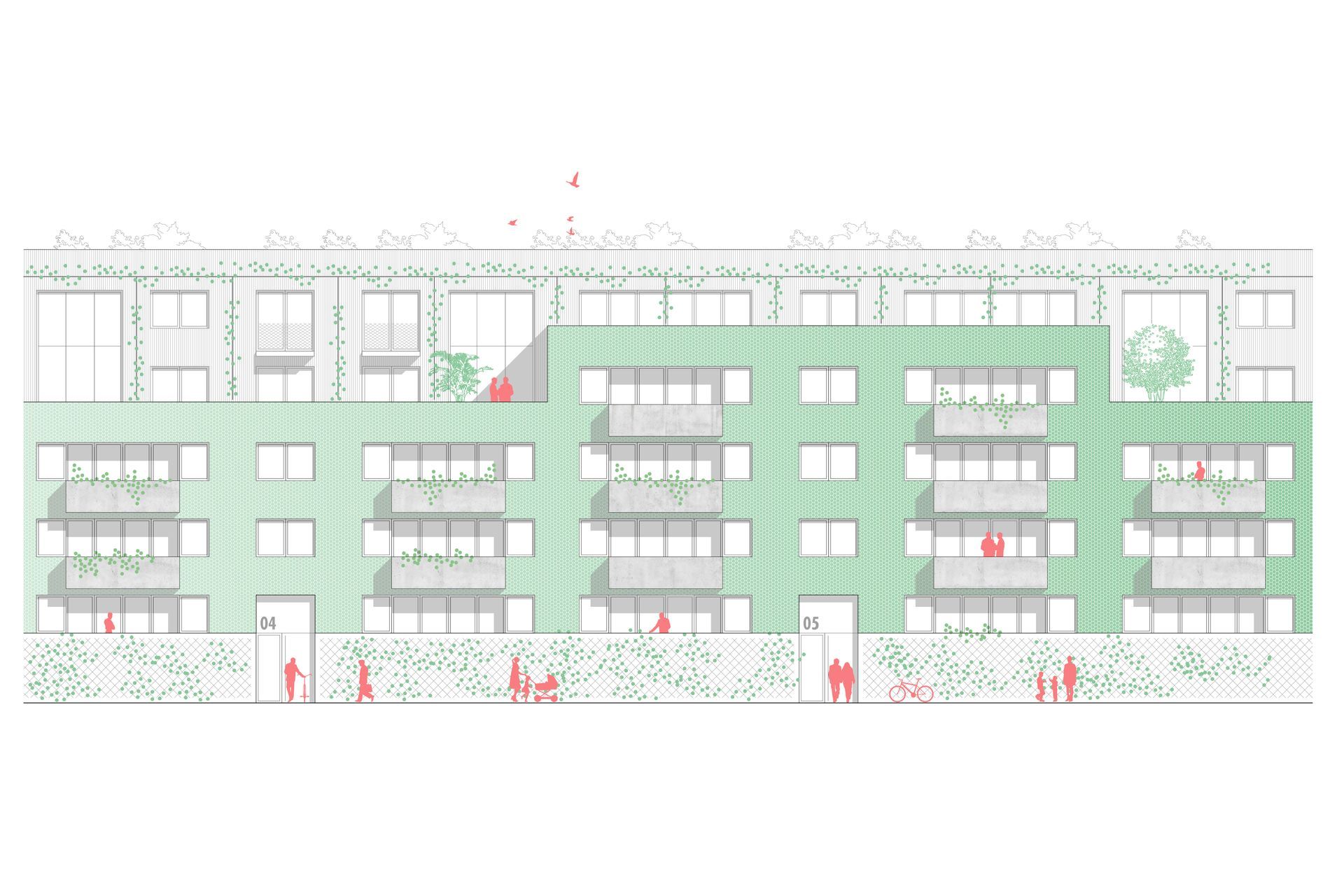 Der aktuelle Masterplan „Mickten reloaded“ formuliert den stadtplanerischen Gedanken einer Stadtgrünvernetzung, welche den landschaftlichen Charakter des angrenzenden Landschaftsraum Elbe fortführt und mit den neu entstehenden Quartieren verknüpft. Die weiterentwickelte städtebauliche Idee interpretiert die vorhandene Rahmenplanung einer Blockrand-besetzung mit eingefügter Hofbebauung auf unkonventionelleArt und Weise neu und führt sie in einer offenen Struktur fort. Ausgangspunkt der Konzeptüberlegung ist es, die vorhandenen Qualitäten aus bestehendem Grün und sozialem Raum aufzugreifen, zu stärken und für die Bewohner des Bestandes, sowie die künftigen Einwohner bestmöglich nutzbar zu machen. Leitidee ist es die räumliche Vereinigung des nördlichen Quartiers aus einer bestehenden U-förmigen Wohnbebauung der achtziger Jahre mit dem südlich anschließenden Baufeld anzustreben. Die sich selbstverständlich ergänzende Raum-/ und Kantenbildung, eine gemeinsame Partizipation an der vorhandenen Vegetation im Bereich der bestehenden Kita, daraus erwachsende positive mikroklimatische Effekte durch eine optimierte Quartiersbelüftung, sowie die Begünstigung der sozialen Durchmischung mittels fließender Übergänge an den inneren Quartierkanten werden zu Entwicklungszielen. Folgerichtig wird die nördliche Blockkante nicht durch Gebäudeteile geschlossen. Alternativ richtet sich die bauliche Struktur im Inneren parallel zu den Blockrändern aus und erfährt eine für die Belichtung günstige Nord-/ Südausrichtung. Die südliche Quartiereinfassung reagiert in Form einer langgestreckten Zeilenbebauung aus mehreren Baukörpen auf das übergeordnete Motiv der „Grünfuge“. Die Gebäudezwischenräume, wie auch der mittig durchbrochene Sockel bieten großzügige Möglichkeiten, das städtebauliche Leitmotiv der Vernetzung als engmaschige Gebietsdurchwegung fortführend zu ermöglichen. Der Orientierung im Gebiet Rechnung tragend wird eine Höhenmarke in Form eines höheren Hauses am Umlenkpunkt der Grünfuge gesetzt. Den Ansatz eines lebendigen Stadtviertels vertiefend werden differenzierte Gebäudehöhen vorgeschlagen, um auch baulich urbane Vielfalt zu realisieren. Bewusst wurde auf diese Weise die Höhenvorgabe der Rahmenplanung weitergedacht. Die nutzungsbezogen angewandten Baukörpertypologien stehen für eine klare Haltung zu architektonischen Prinzipien und sprechen eine moderne Architektursprache. Die darin entwickelten Grundrisse zeichnen sich durch einen hohen Grad an Zielgruppenflexibilität und dem gewünschten Mix an Raumerfordernissen und Wohnungstypologien aus. Der konzeptorientierte Mix ermöglicht ein zukunftsweisendes Wohnraumangebot für die verschiedensten Lebensmodelle und trägt dadurch nachhaltig zu einem gesunden, natürlichen und generationsübergreifenden Lebensraum für die künftigen Bewohner im Quartier bei. Ergänzt wird das neue Viertel durch kommunikative Zentren. Ein Nachbarschaftstreff bietet eine Plattform zur Zusammenkunft und Austausch in Café-Atmosphäre und bietet Raum für gemeinsame Aktivitäten der Bewohner. Ein Angebot für Bewohner, die ihr zusammenleben nicht durch anonymes Wohnen definieren möchten. Ein Angebot, das verbindet und das Modell „real socializing“ verfolgt, wie es bereits in gut funktionierenden Quartieren durch Stadtteilhäuser / -räume vorgelebt wird. Die vorgeschlagenen Gemeinschaftsdachterrassen bieten gleichfalls die Möglichkeit zum Treff oder Raum für schöne Ausblicke, Gartenarbeit und Rückzugsmöglichkeiten im Freien. Eine urbane Ergänzung erfährt das Wohnensemble durch mehrere kleinere Gewerbeeinheiten, die zur Nahversorgung Raum für Einkaufsmöglichkeiten bieten. Das Konzept einer nachhaltigen, qualitätsvollen Architektur sollte sich stets auch in der Wahl der Materialität fortsetzen. Starke, Atmosphäre stiftende Materialien tragen zur Entstehung eines wertvollen urbanen Ortes mit individuellem Charakter und Wiedererkennungswert bei.