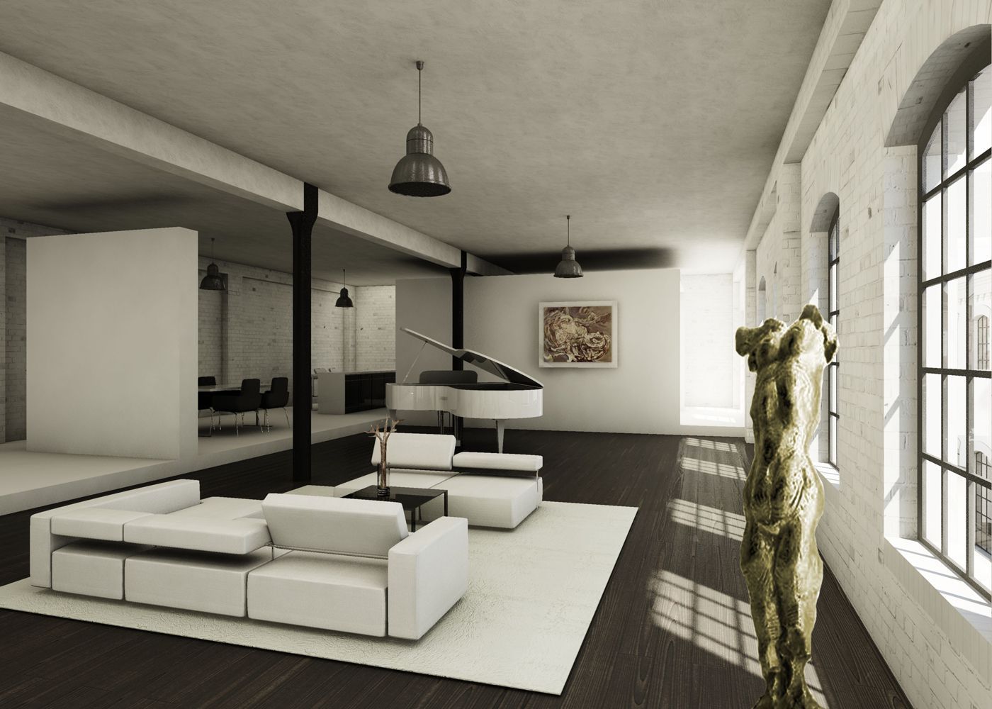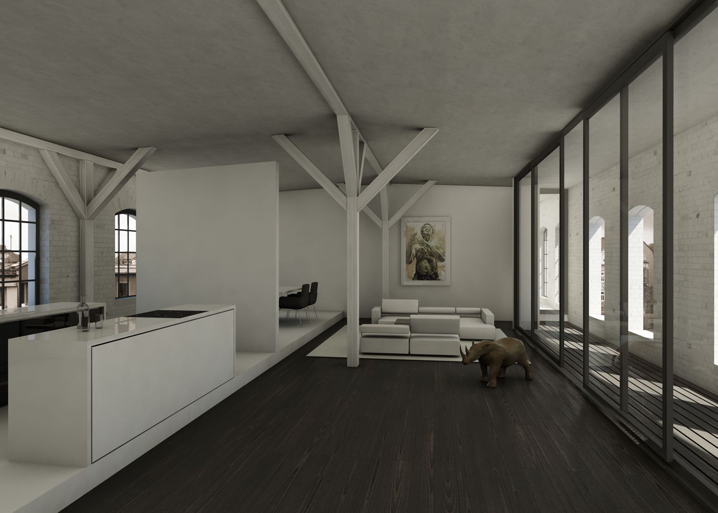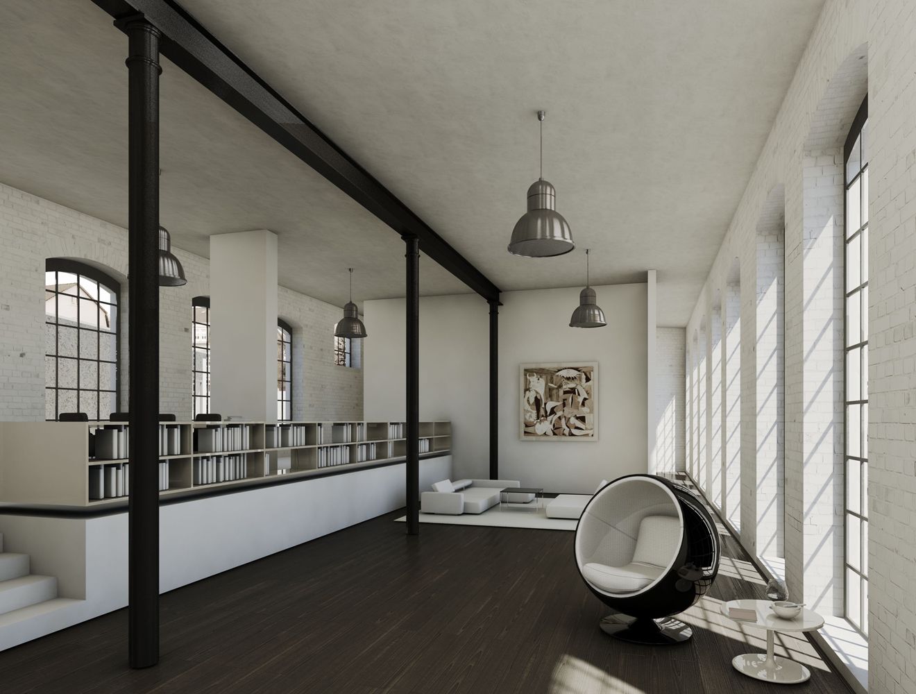 Die beiden parallel zueinander positionierten Gebäude liegen in zweiter Reihe an der Kiefernstraße in Radebeul und entsprechen in ihrem Erscheinungsbild der Industriearchitektur der Jahrhundert-wende. Die räumlichen Dimensionen im Innenraum ermöglichen großzügiges Loftwohnen. Die sechs Lofts wurden geschossweise angeordnet. Der Wohnraum ist zentral positioniert. Schlaf- und Nassbereiche sind seitlich daran angegliedert und durch leichte Trennwände mit großzügigen Öffnungen und Schiebetürelementen separiert, so dass ein lockerer, offener Grundriss erhalten blieb. Die bereits im Bestand vorhandenen, großzügigen Fensteröffnungen bleiben in Erscheinungsbild, Dimension und Anzahl erhalten und tragen mit dem vorhandenen, aufgearbeiteten Stützentragwerk maßgeblich zum Industriecharm bei.