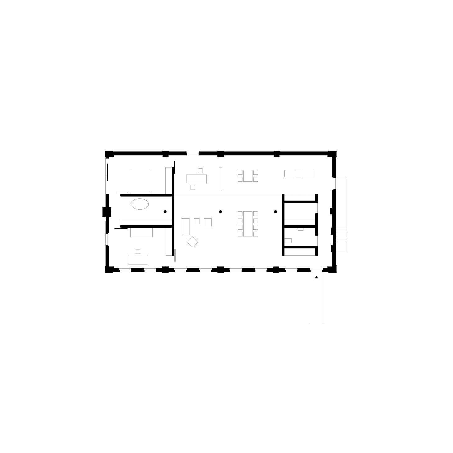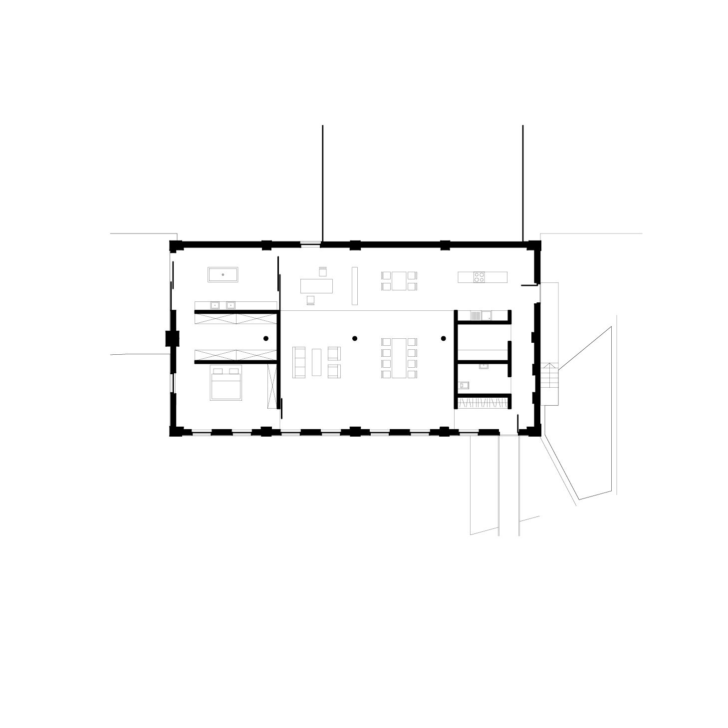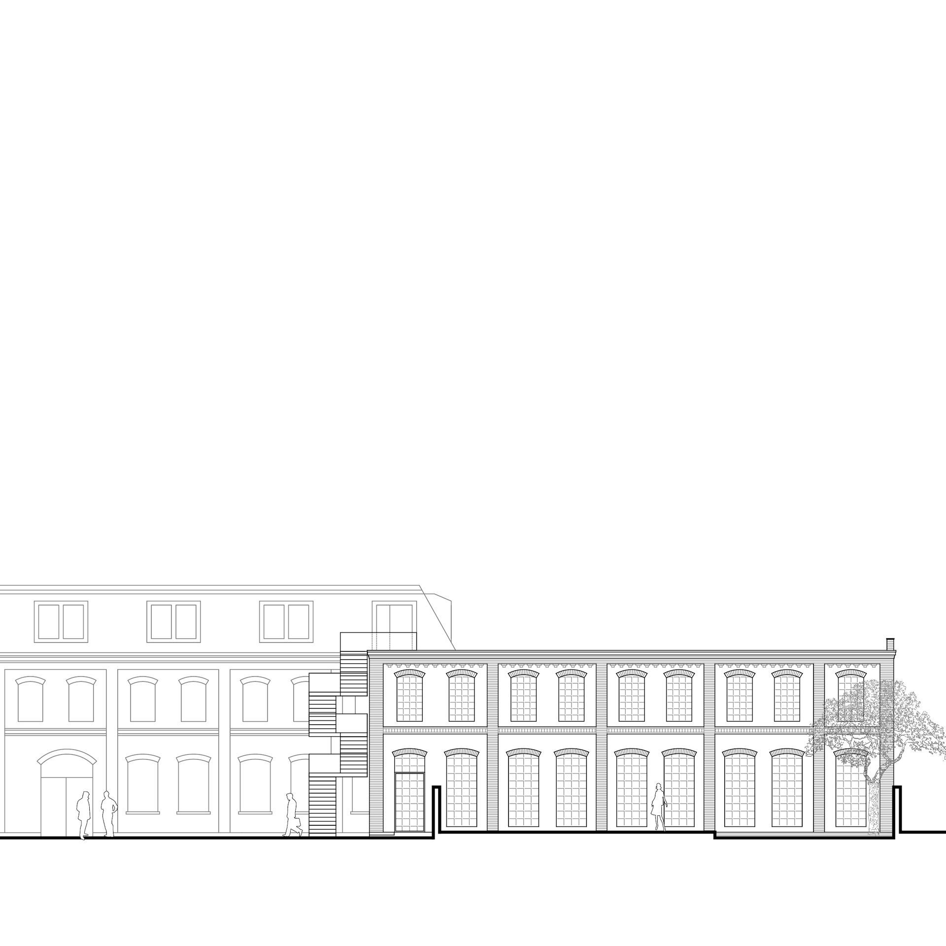 Die beiden parallel zueinander positionierten Gebäude liegen in zweiter Reihe an der Kiefernstraße in Radebeul und entsprechen in ihrem Erscheinungsbild der Industriearchitektur der Jahrhundert-wende. Die räumlichen Dimensionen im Innenraum ermöglichen großzügiges Loftwohnen. Die sechs Lofts wurden geschossweise angeordnet. Der Wohnraum ist zentral positioniert. Schlaf- und Nassbereiche sind seitlich daran angegliedert und durch leichte Trennwände mit großzügigen Öffnungen und Schiebetürelementen separiert, so dass ein lockerer, offener Grundriss erhalten blieb. Die bereits im Bestand vorhandenen, großzügigen Fensteröffnungen bleiben in Erscheinungsbild, Dimension und Anzahl erhalten und tragen mit dem vorhandenen, aufgearbeiteten Stützentragwerk maßgeblich zum Industriecharm bei.