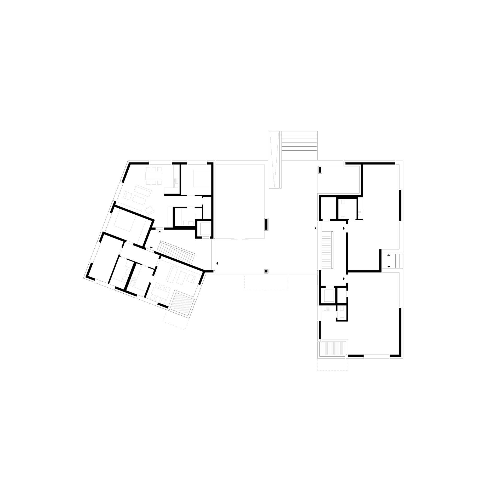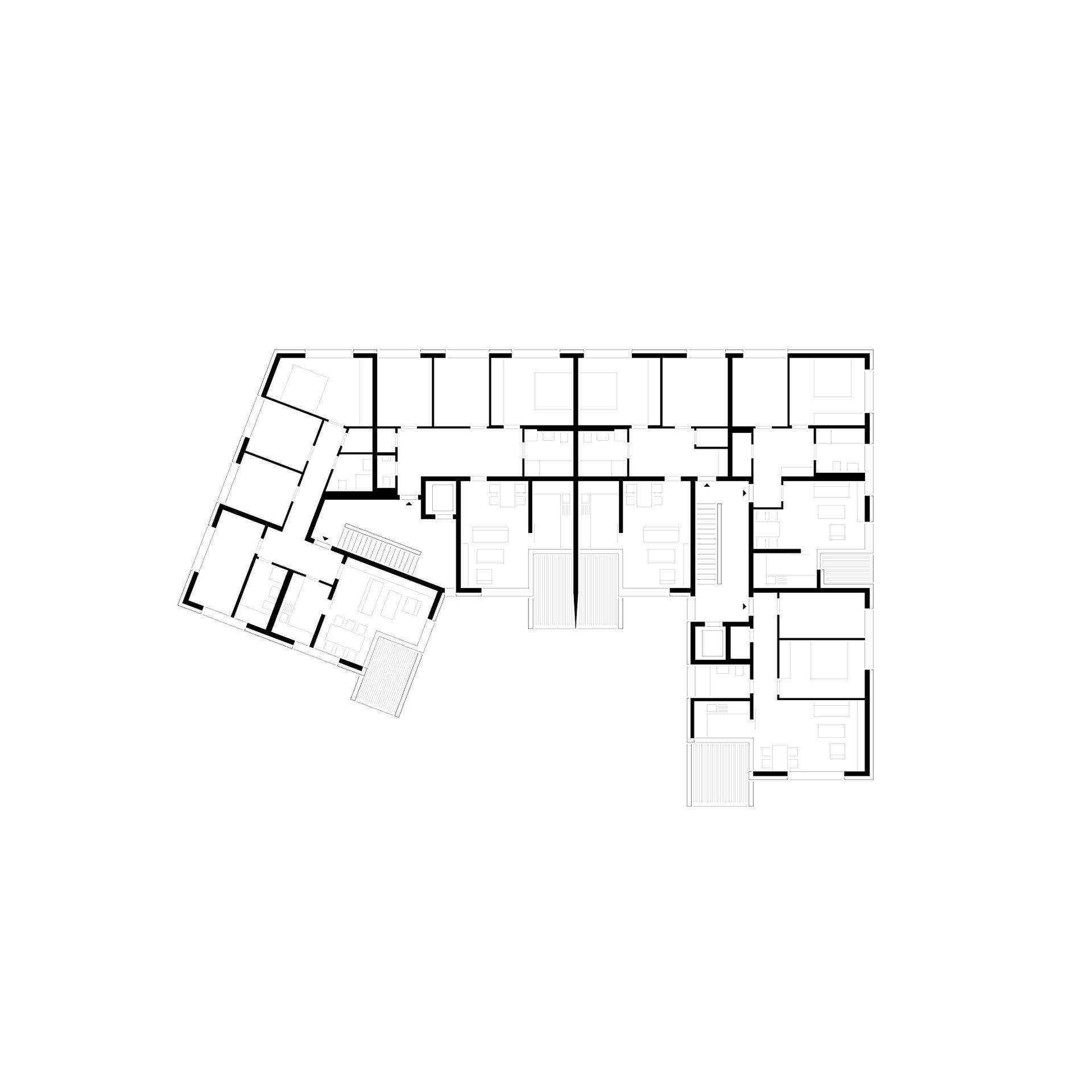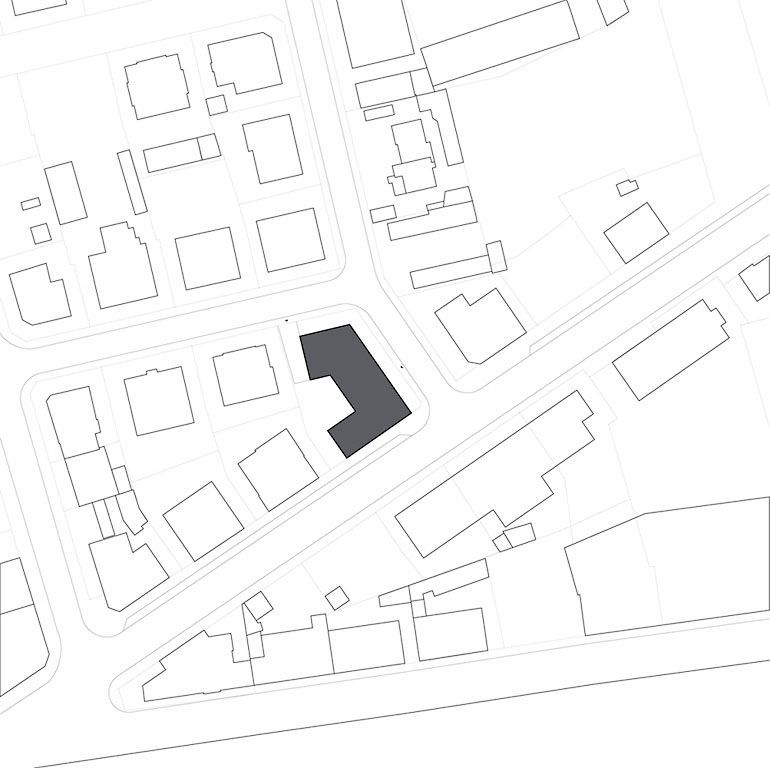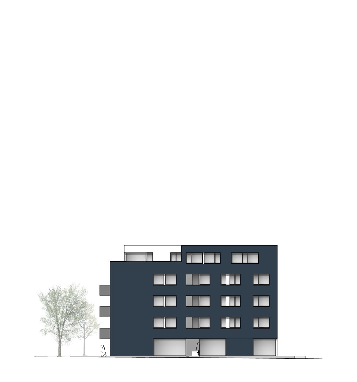 Das Grundstück im Stadtteil Dresden-Löbtau ist dreiseitig von Straßen umfasst. Aus dieser städtebaulichen Situation leitet sich die Charakteristik des Baukörpers als quartierschließende U-Form ab. Der Leitgedanke „form follows function“ wird zu „function follows form“ gewandelt. Die U-Form ermöglicht allen Bewohnern gleiche, optimale Wohnbedingungen. Gewohnt wird in den geschützten, lichtdurchfluteten Innenhof, geschlafen zu den nachts lärmarmen Straßen.Der als Skulptur verstandene Baukörper reagiert durch bewusst eingesetzte Architektur selbstverständlich auf seine Umgebung. Überhöhung, subtraktive Bereiche, auskragende Balkonzonen und ins Gebäude hineinführende Loggien setzen Betonungen bzw. ermöglichen eine angemessene Überleitung zu angrenzenden Situationen wie Straßen oder Nachbargebäuden. Als Ziel sollte ein Baukörper geformt werden, der die städtebauliche Struktur im Quartier nachhaltig stärkt, die architektonische Qualität des Viertels positiv beeinflusst und Bewohnern Raum für nachhaltige Lebensqualität bietet. Erlebt man den Ort heute, findet man diesen Anspruch als gebaute Realität wieder. Beginnend bei dem großzügigen, zwischen Straße und Hof hindurchgesteckten Eingang, ermöglicht das Gebäude aus allen Blickwinkeln neue und spannende Perspektiven. Expressive Zonen stehen im Spannungsfeld zu intimen Bereichen. Das farbliche Konzept rahmt die bauliche Substanz. Zur Straße wurde bewusst eine sehr dunkle Farbgebung gewählt. Die dunkle Tönung scheint Lärm und Schmutz zu absorbieren. Ausgeschnittene Bereiche, wie Innenhof, Staffeln oder Loggien erhielten eine weiße Oberfläche, welche das Licht verstärkt.