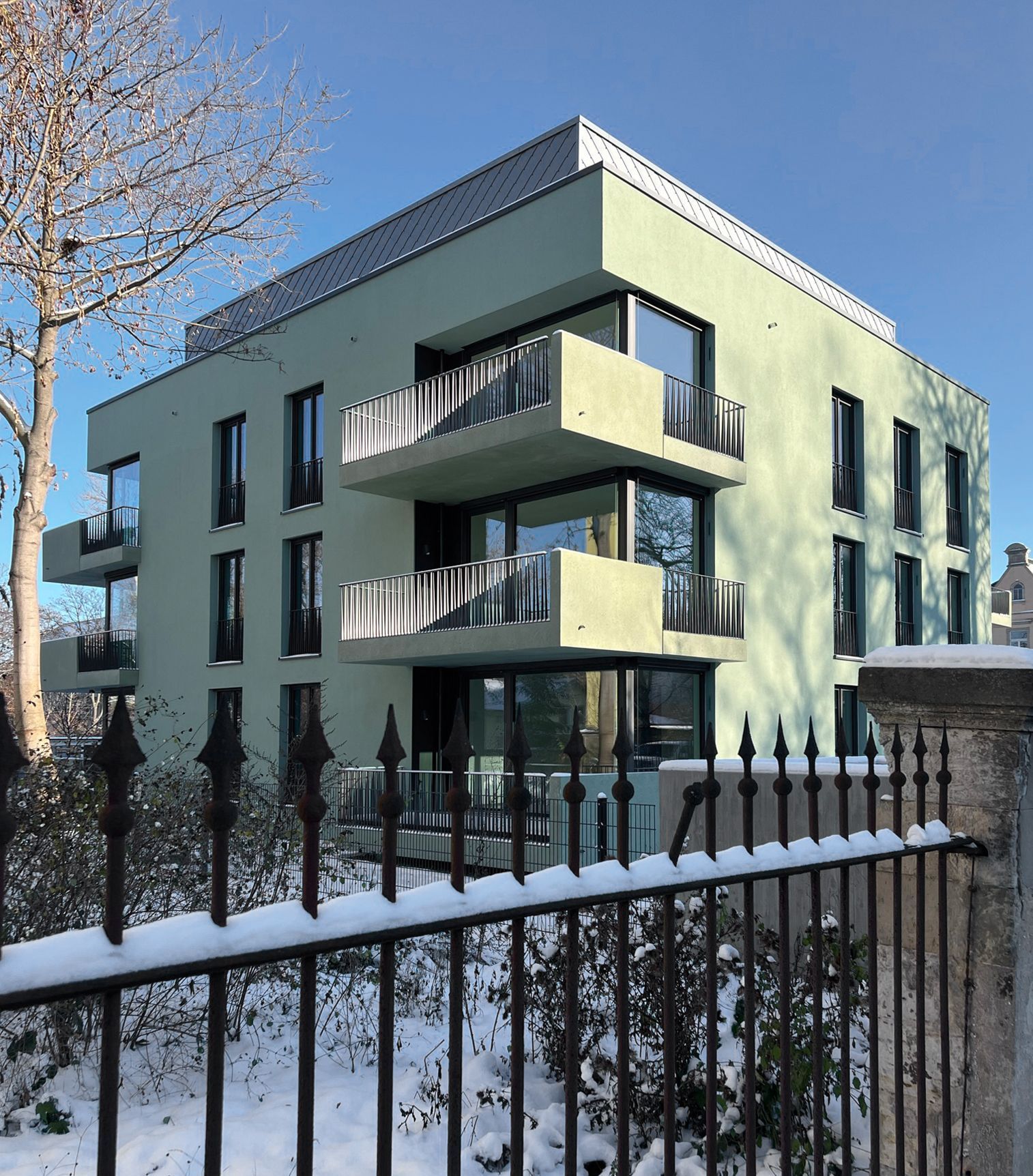 Das Gebäude in der Wiener Straße, Dresden, ist als Mehrfamilienhaus konzipiert und befindet sich im Stadtteil Seevorstadt Ost. Die Planungs- und Bauphase des Projekts erstreckt sich über die Leistungsphasen 1 bis 8, wobei die Fertigstellung im Jahr 2022 erfolgte. Die Gesamtbruttogrundfläche (BGF) dieses Wohnkomplexes beträgt dabei circa 2.800 Quadratmeter. Diese Fläche wird effizient genutzt, um modernen und komfortablen Wohnraum für mehrere Familien zu schaffen. Das Mehrfamilienhaus in der Wiener Straße fügt sich harmonisch in die städtische Umgebung ein und setzt dabei auf zeitgemäße Architektur, die sowohl ästhetisch ansprechend als auch funktional ist. Mit diesem Projekt wurde nicht nur einen architektonischer Beitrag für die Stadt Dresden geleistet, sondern auch hochwertiger Wohn-raum geschaffen, der den zeitgemäßen Ansprüchen an Wohnqualität gerecht wird. Das Mehrfamilienhaus spiegelt dabei nicht nur modernes Design wider, sondern auch eine durchdachte Planung, die den Bedürfnissen der zukünftigen Bewohner gerecht wird. Insgesamt stellt das Mehrfamilienhaus Wiener Straße ein gelungenes Beispiel für zeitgemäßes, urbanes Wohnen dar und trägt dazu bei, das Stadtbild von Dresden zu bereichern.