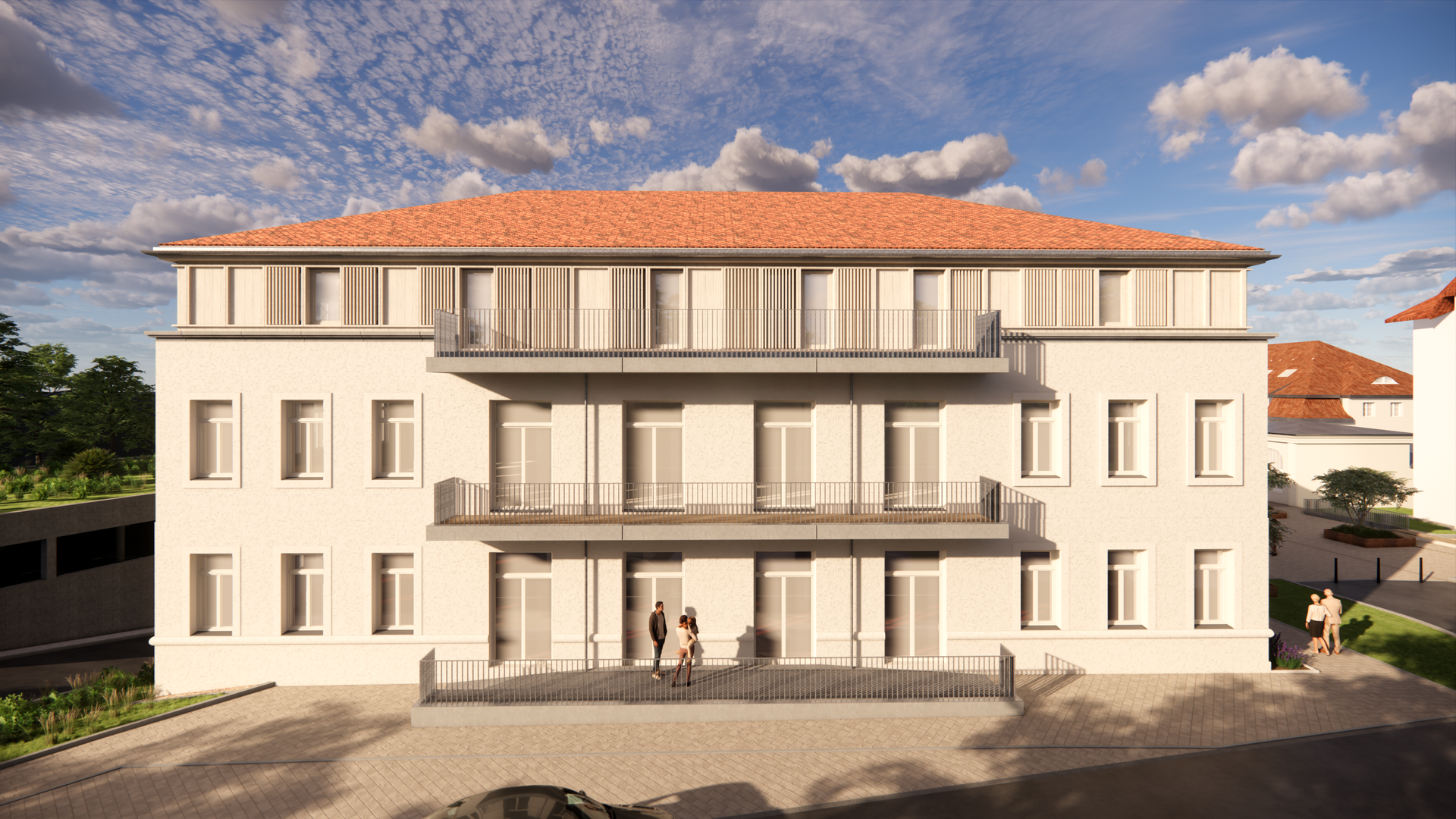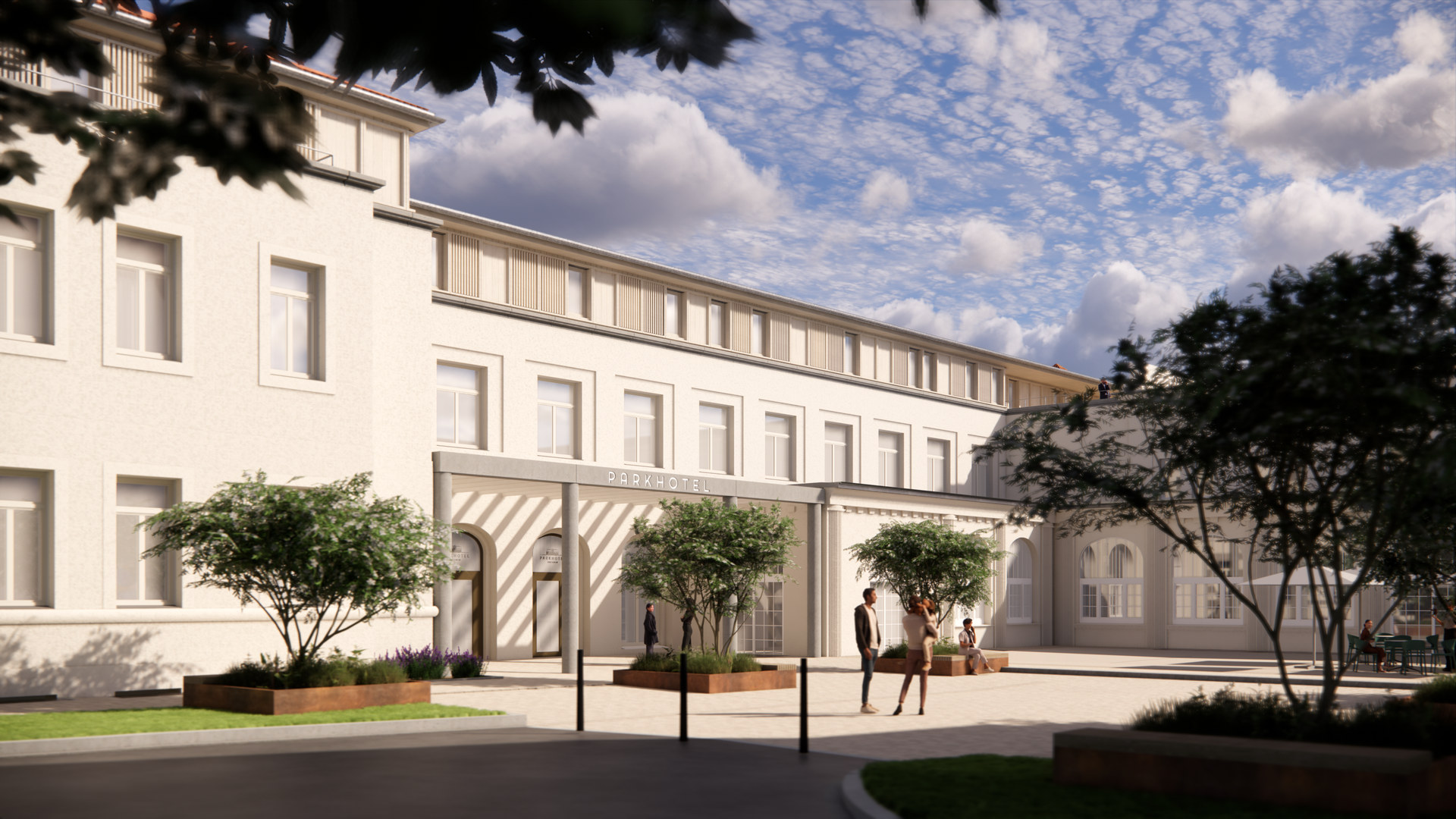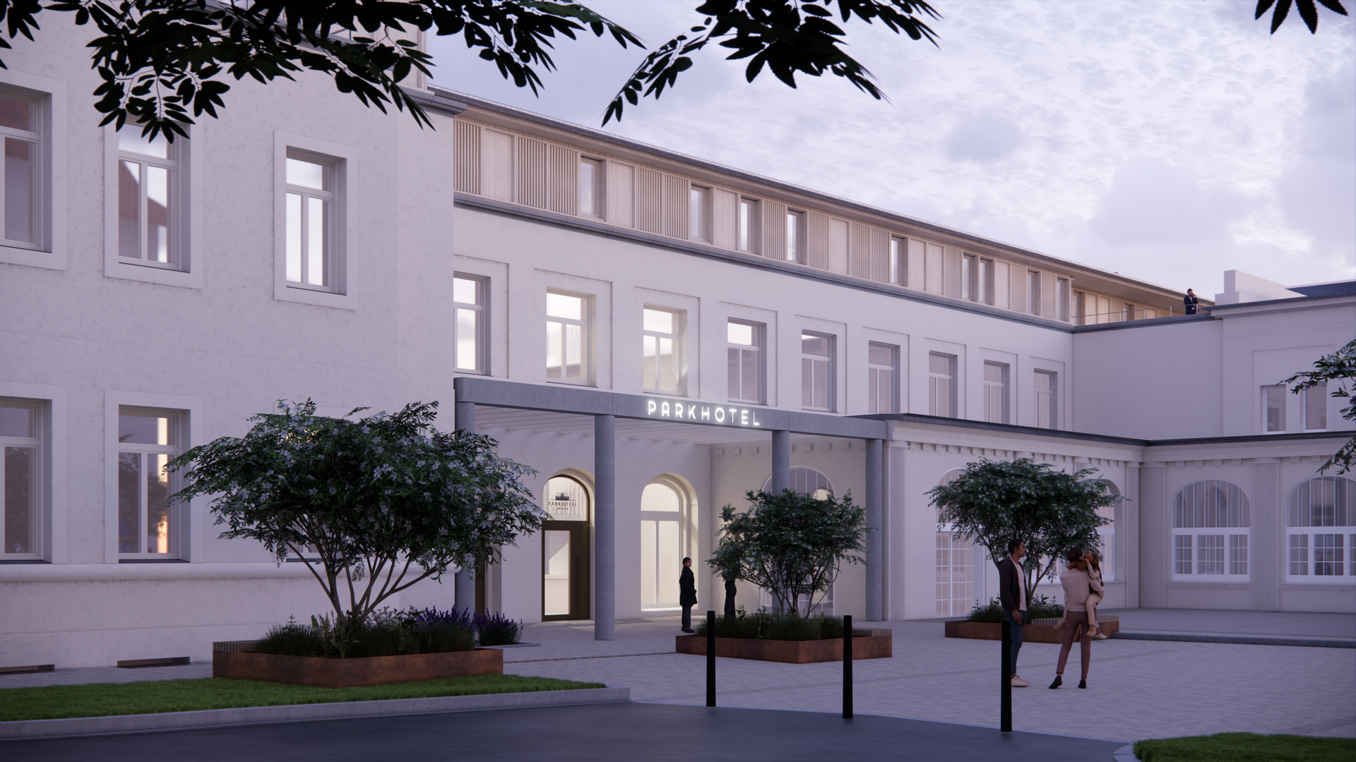 mit Ambulanz beherbergen, und das Dachgeschoss mit Blick auf die angrenzenden Baumkronen erhält eine Hotelnutzung.