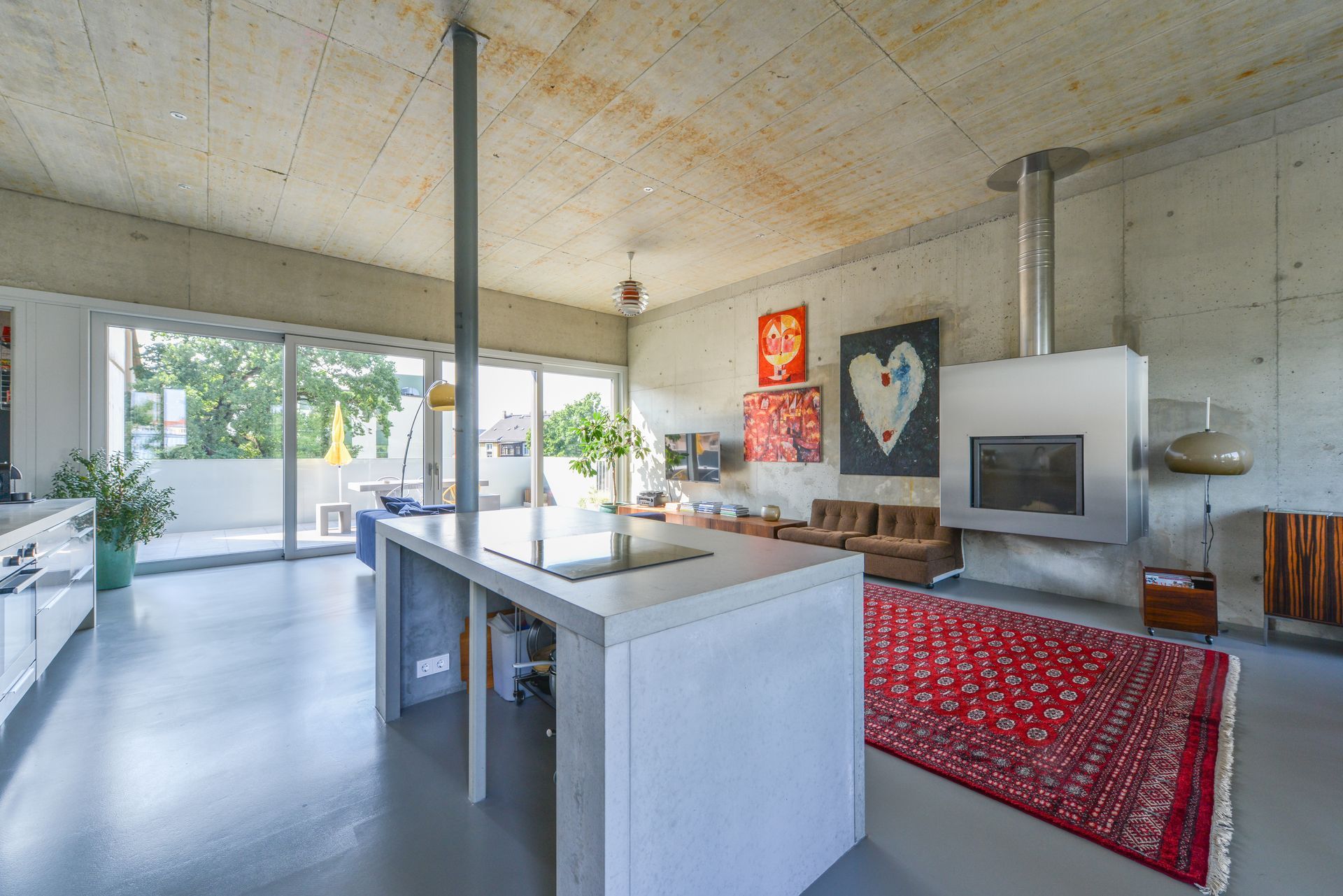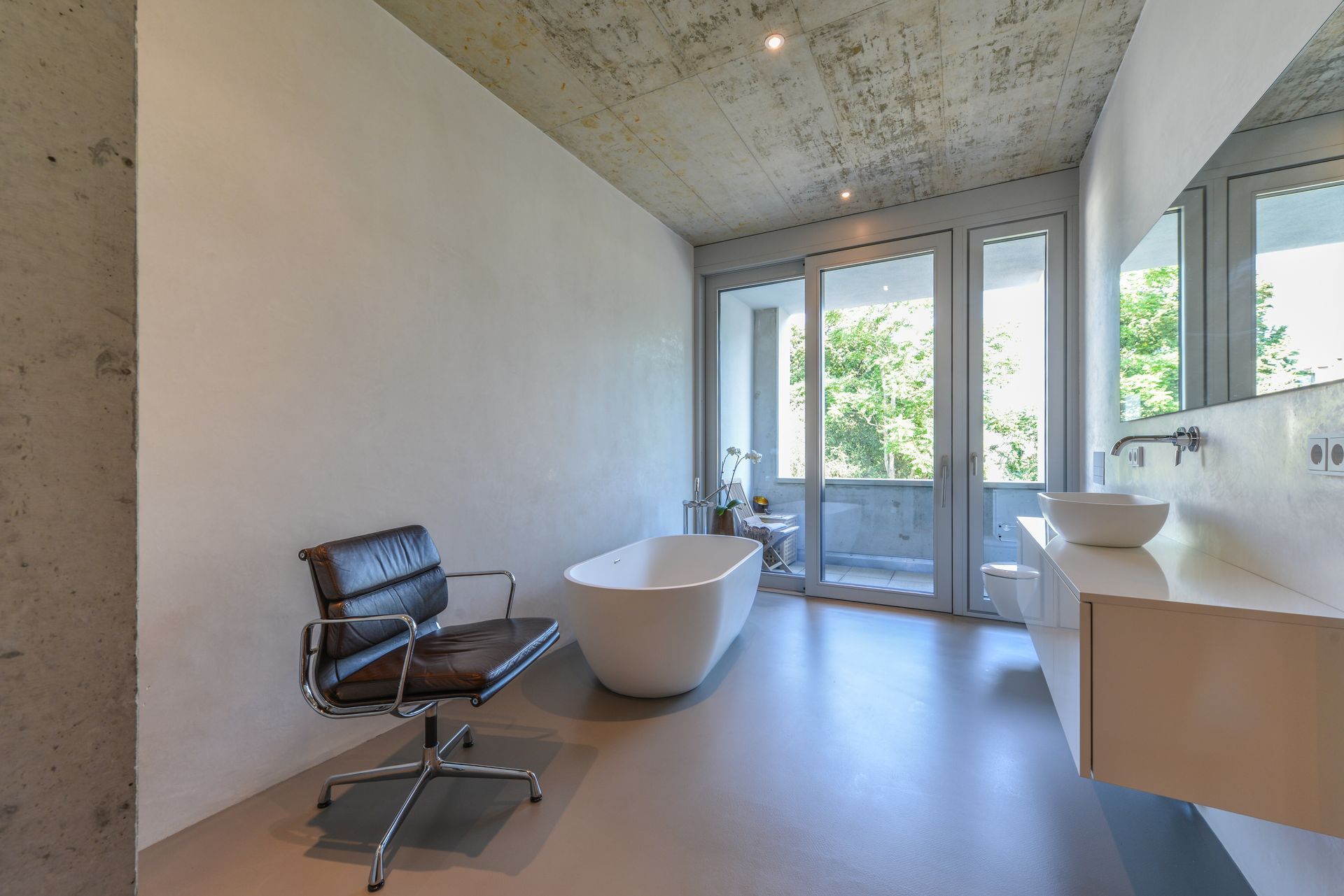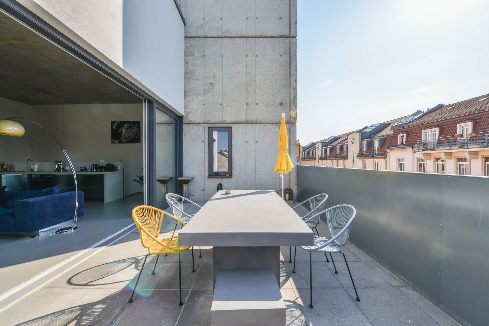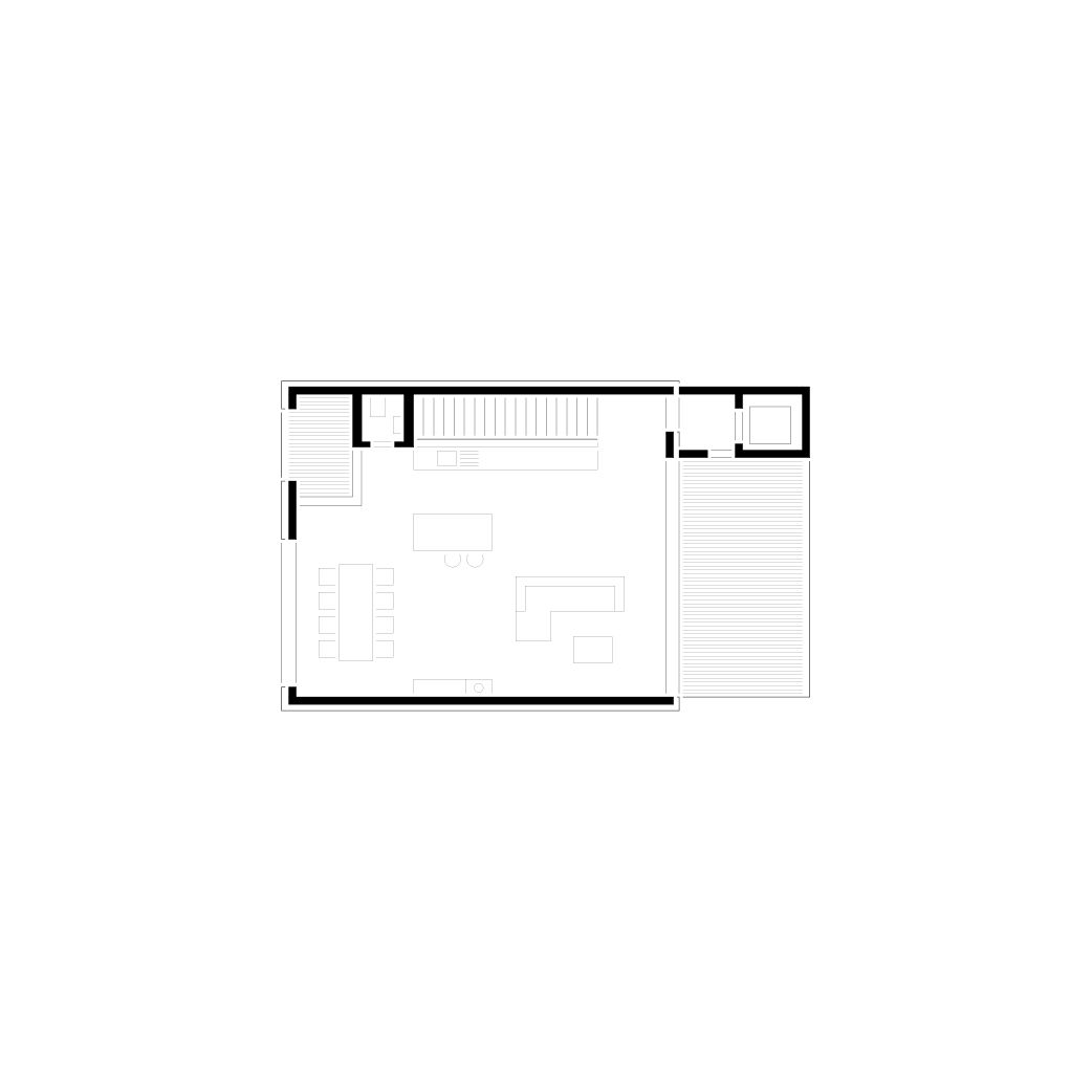 Das innerstädtische Einfamilienhaus fügt sich in eine schmale Baulücke auf der lebendigen Alaunstraße ein. In Kubatur und Position vermittelt es ganz selbstverständlich zwischen den stark unterschiedlichen Nachbarbebauungen. Das gegenüber eines kleinen Platzes gelegene Haus steht mit dem moderne Erscheinungsbild sinnbildlich für den individuellen, zeitgemäßen Stadtteil. Die klar gegliederte Lochfassade aus Beton wandelt, analog der dahinter befindlichen Nutzung, auf subtil, spielerische Weise Strenge in dezente Vielfalt. Die Straßenfassade nimmt eine schützende Haltung ein, wogegen sich die Hoffassade zum Licht und Innenhof öffnet. Wie für die Dresdner Neustadt typisch, wurde im Erdgeschoss eine Ladennutzung vorgesehen. Darüber befindet sich die dreigeschossige Wohneinheit der Bauherrenfamilie. Eine durch alle Geschosse führende einläufige Treppe erschließt die Wohneinheit ab dem Erdgeschoss. Die durchgesteckte, großzügige Wohnebene ist im obersten Geschoss über den Kinder- und Schlafgeschossen gelegen und verfügt über einen weit auskragenden Balkon mit direkten Außenraumbezug in den ruhigen und grünen Innenhof.