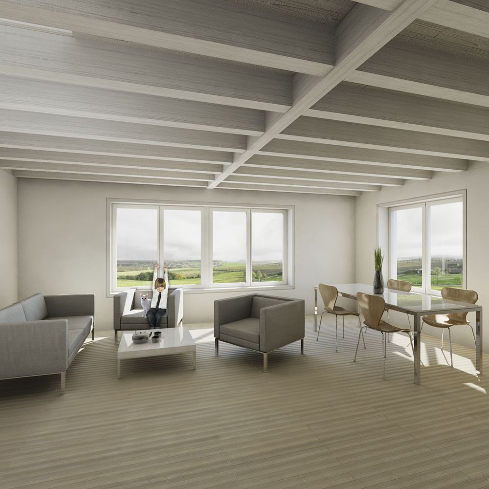 und der gestalterische Ansatz: Den ruhigen Baukörper mit seinen unregelmäßigen Fensterformaten und seiner nicht schönen aber interessanten, von ländlicher Haptik geprägten Fassade mit neuer Nutzung zu versehen. Die Geschlossenheit der Hoffassade wirkt sich positiv auf die Gesamtanlage aus, Öffnungen sollten daher bewusst und in kleiner Anzahl, möglichst in Anlehnung der derzeitigen Fassade, unregelmäßig gesetzt werden.